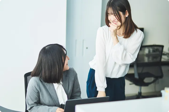 少人数単位でのチーム体制を取り、先輩社員が入社後のフォローをしっかり行います。具体的には、ITツール活用した週単位での状況把握やSNSによるリアルタイムフォローを実践しています。これにより業務の悩みや不安を独りで抱えさせないと同時に、個性や状況に合わせたスキルアップが可能です。その結果、低い離職率と新卒入社社員の高い定着率を実現しています。