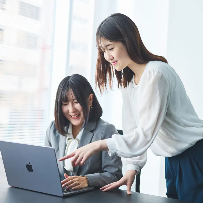 新入社員のサポート体制や社内交流など、仲間と一緒に挑戦し続けられる環境の魅力をご紹介します。
